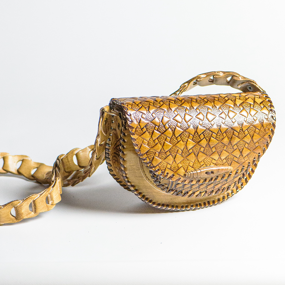 Elegant handmade genuine leather shoulder bag with beautiful hand-tooled on rhombus pattern style across the entire surface (except on the sides). Beautiful beige color and unique design. The bag is dyed with professional dyes.